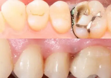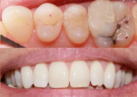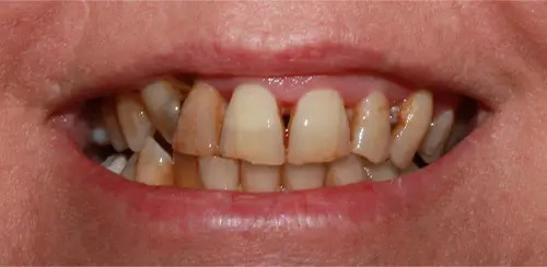 With a crown, several composite fillings, and a whitening system to fix visually unappealing teeth and restore functionality, we transformed this smile into something to really smile about!